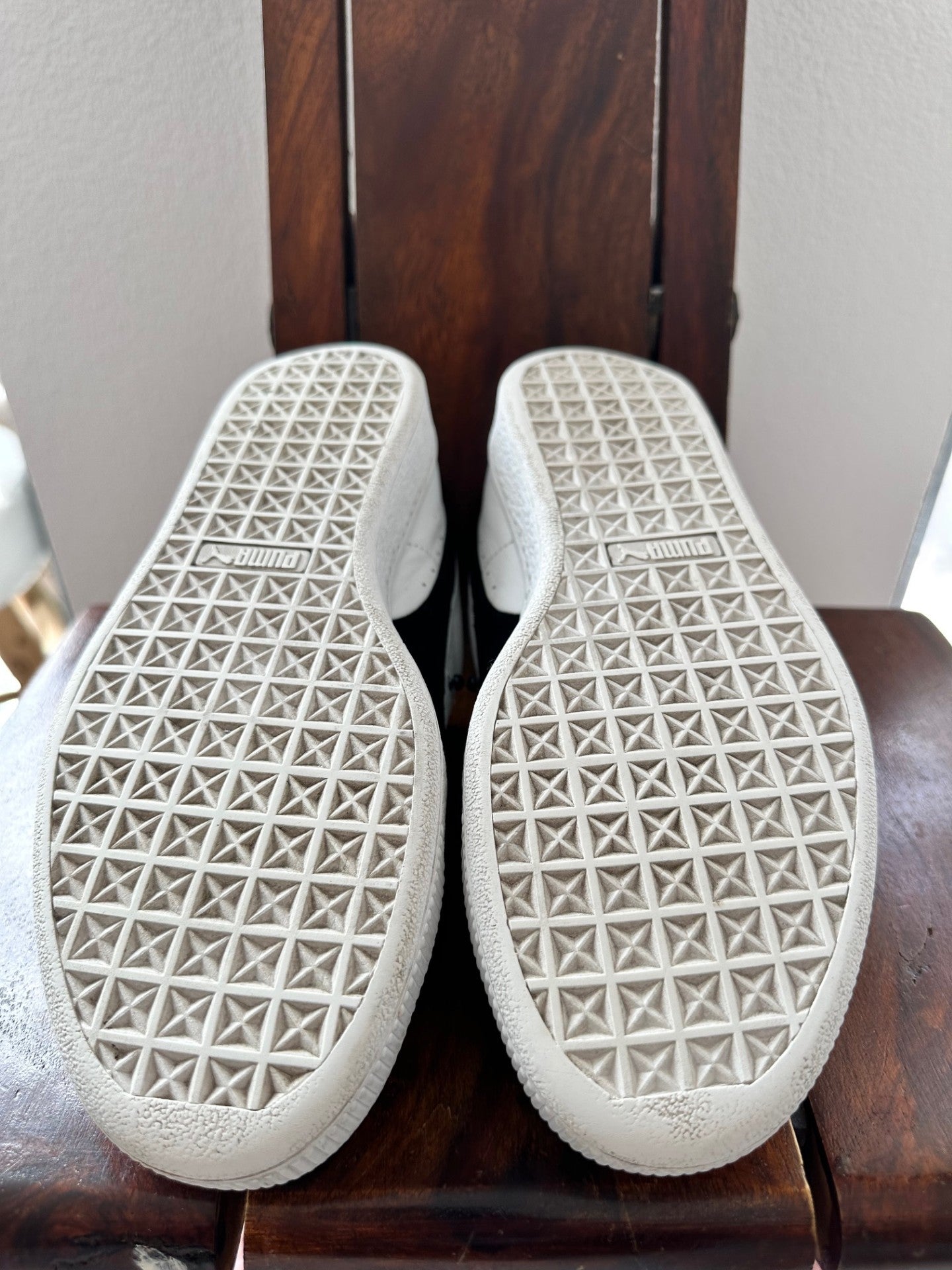 Step up your sneaker game with this rare collaboration between PUMA and fashion icon Karl Lagerfeld. These crisp white low-top sneakers blend sporty comfort with high-fashion flair — perfect for elevating any casual outfit.