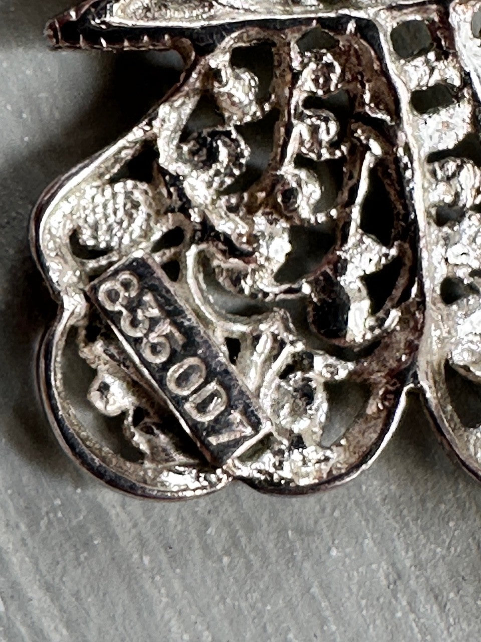 Marked with “835 ODT”, this brooch is a rare find from a smaller artisan studio, preserved in excellent condition.
