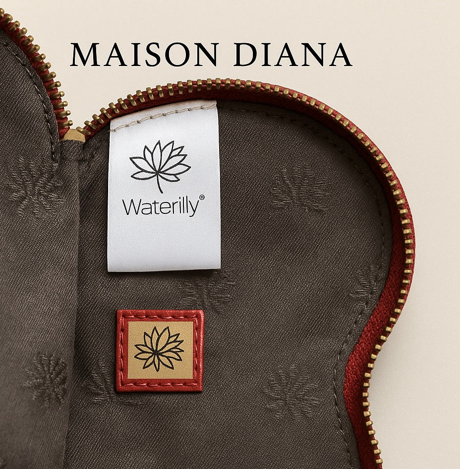 Crafted from genuine leather in a deep, glossy red, this piece combines playful design with elegant craftsmanship. The interior features a subtle lotus flower pattern and signature label. Perfect for carrying coins, cards, or small essentials.