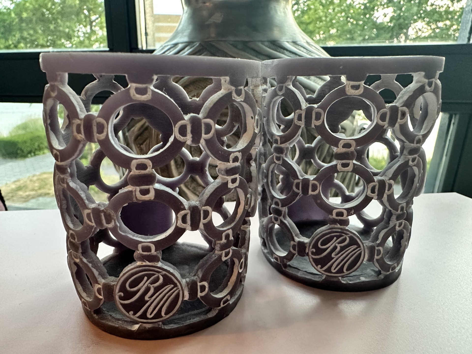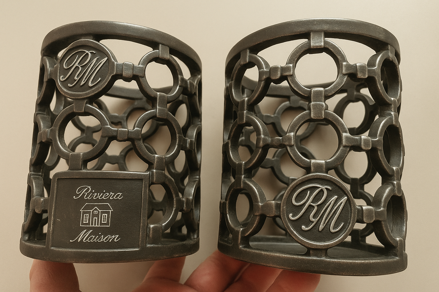 Add a touch of elegance and charm to your home with this beautifully detailed set of two Rivièra Maison tealight holders. Crafted from durable resin in a chic openwork design, each holder features the iconic RM monogram and a classic house emblem. The unique circular motif allows candlelight to shine through, casting enchanting shadows in your space.